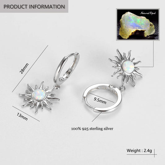100% 925 Real Sterling Silver Sun Design with Opal Stone Hoop Earrings Gift for Girls Friend Kid Lady Fine Jewelry 2022