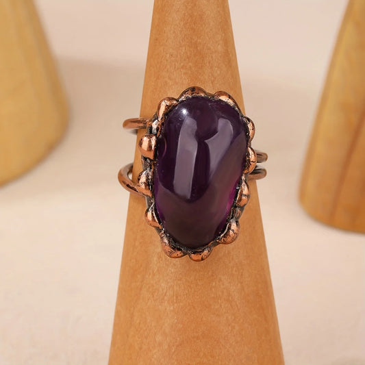 1pc Vintage Natural Purple Crystal Ring Just Pick A Style You Like (Color And Shape Of Stone Are Uncertain)