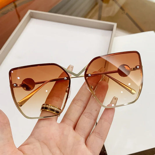 2024 New Rimless Cut Edge Sunglasses For Women Sunscreen Pearl Frame Retro Uv Protection High-grade Sunglasses