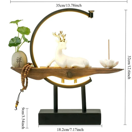 Ceramic Crafts Lucky Deer Water Fall LED Home Ornaments - Incense Burner Without Incense