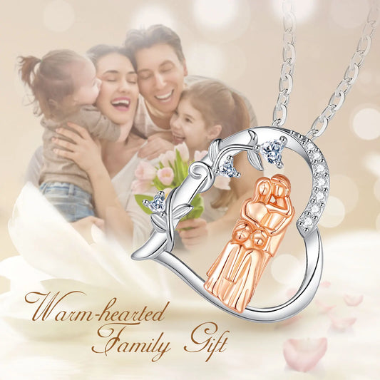 Eudora 925 Sterling Silver Mother and daughter Necklace Fine Mother Kids Family Heart Pendant Trendy Jewelry Mother's Day Gift