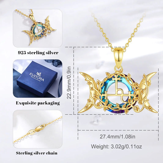 Eudora 925 Sterling Silver Lilith Moon Necklace 18k Gold Demon Lilith Sigil Amulet Pendant Austrian Crystal Jewelry Fine Gift