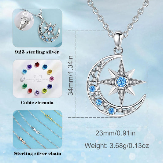 Eudora 925 Sterling Silver Crescent Moon Necklace for Women Fine North Star Moon Pendant personality Jewelry Party Gift with Box