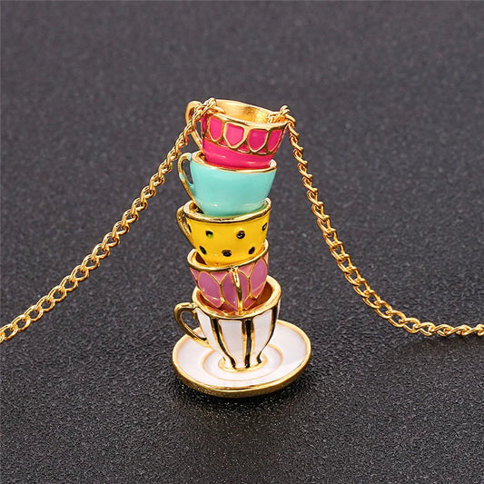 Fashion Womens Mens Necklace Teacup Necklace Cups Pendant Necklace 2022 Long Necklaces Enamel Tea Cups Jewelry on The Neck