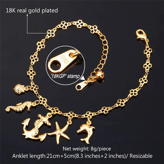 Jewelry Anklet Starfish&Dolphin Summer Jewelry Ocean Cute Yellow Gold/Silver Color Ankle Bracelet On A Leg