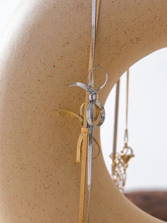 Waterproof Popular Snake Chain Trendy Bowknot Bow Chic Necklace Bracelet Bangle Set Stainless Steel Jewelry Bijoux 2024