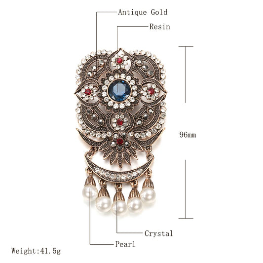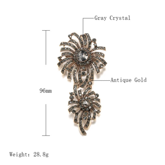 Hot Gray Crystal Flower Brooch Pin For Women Antique Gold Arabesque Rhinestone Brooch Lapel Scarf Broches Vintage Jewelry