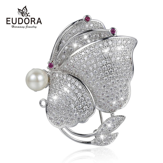 EUDORA Top Quality Crystal Insect Brooch Butterfly Brooches Pin Fashion Brooch For Women Pins Scarf Clip DIY Jewelry party gift
