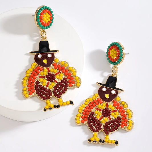 Thanksgiving Day Boho Handmade Beaded Turkey Earrings,Cute Celebrate Frstival Party Animal Women Accessories