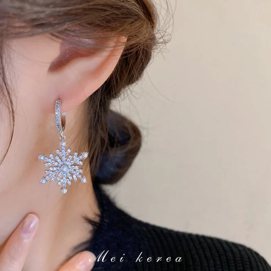Silver Needle Zirconia Snowflake Pearl Drop Earrings For Women Christmas New Year Jewelry Earrings Gifts Party