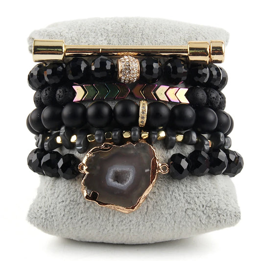 RH Fashion Bohemia Jewelry Accessory Semi Precious Stone Beaded Druzy Charm 6pc Stack Bracelet & Bangle Sets For Women Gift