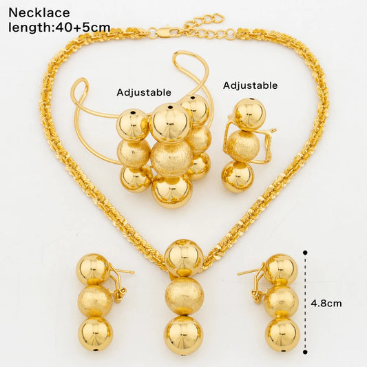 Luxury Gold Color Jewelry Set Nine Beads Cuff Bracelet Earrings Necklace African Dubai Drop Earrings Ring Fashion Italy Jewelry