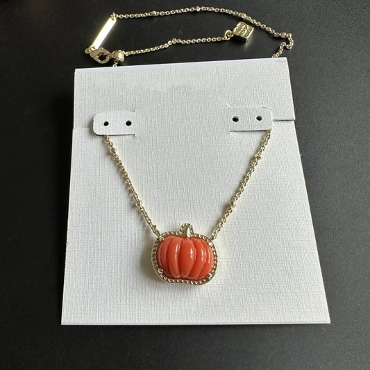 Halloween Orange Small Pumpkin Spooky Mood Gemstone Pendant Necklace for Women, Fashion Jewelry, Unique Gifts