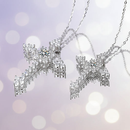 Moissanite Cross Necklace - 925 Sterling Silver Christian Pendant