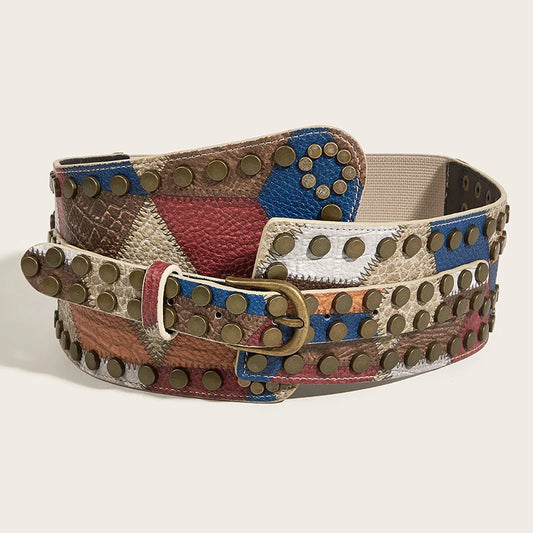 Vintage Rivet Elastic Corset Belt Female Wide Stretch Cummerbunds Dress Waistband Designer Belts For Women Y2K Accessory
