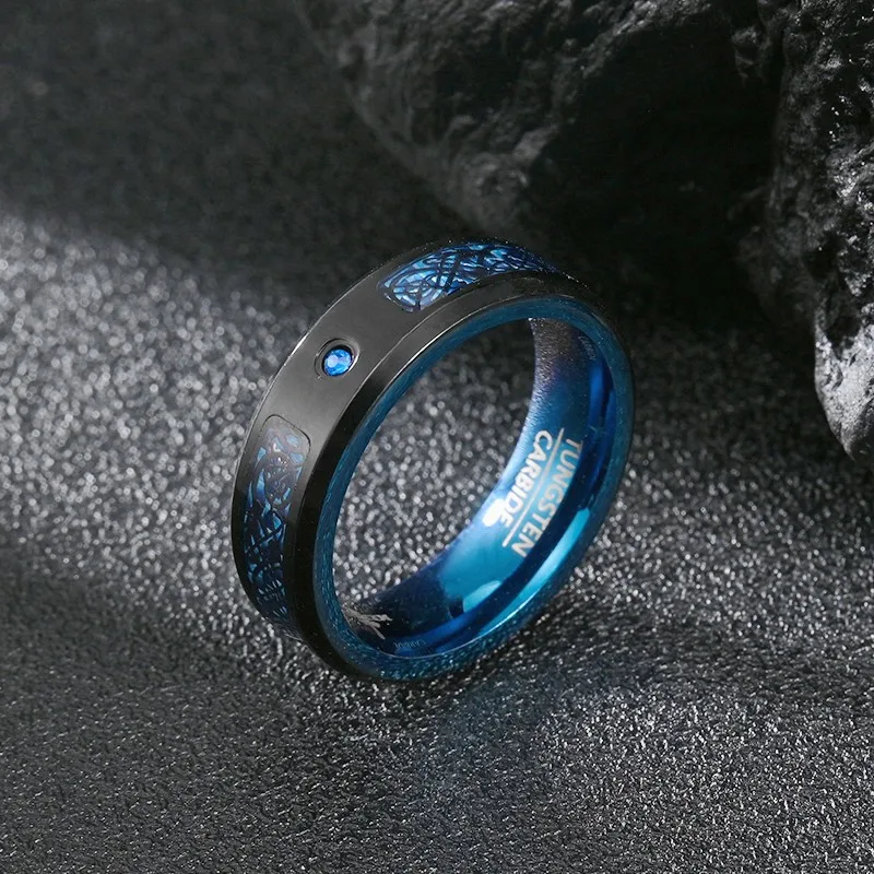 Fashion Personality Inset Zircon Stone Ring Stainless Steel Dragon Pattern Titanium Steel Men Ring Jewelry Gift Wholesale