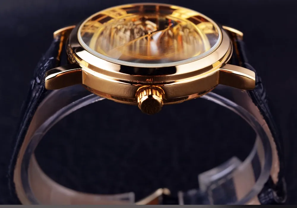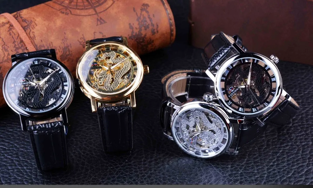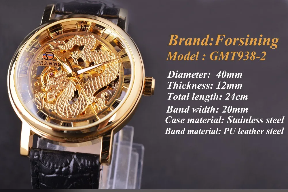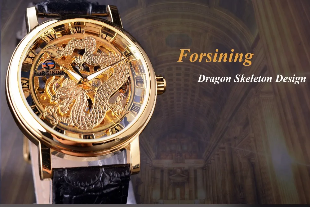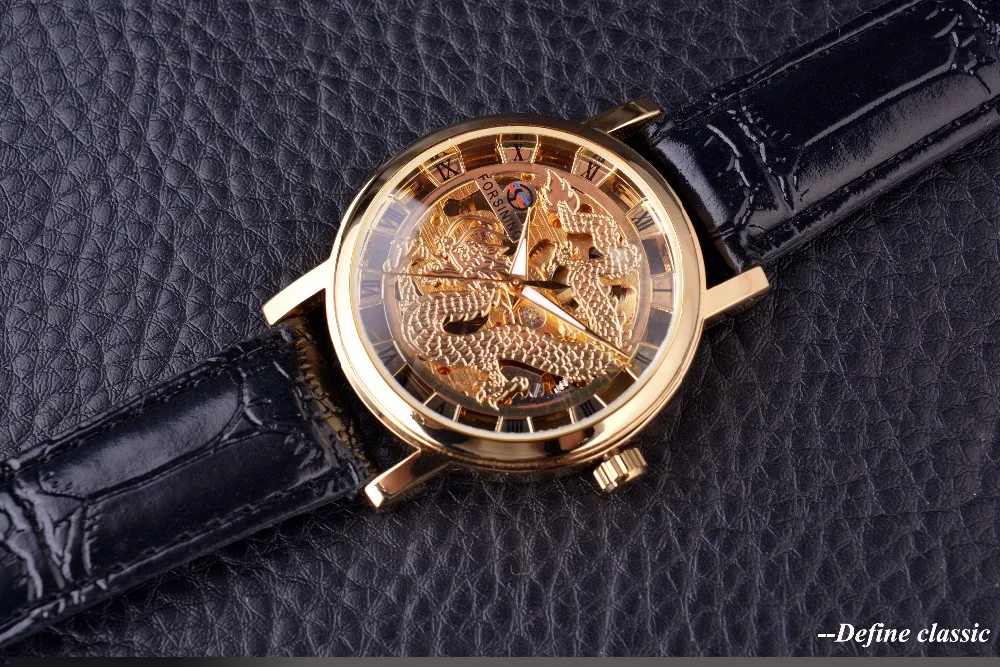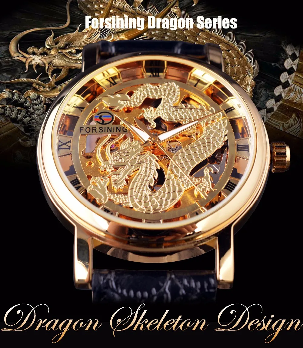 Forsining Chinese Dragon Skeleton Design Transparent Case Gold Watch Mens Watches Top Brand Luxury Mechanical Male Wrist Watch