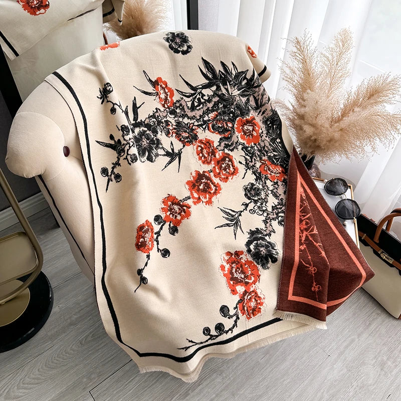 Luxury Brand Women Two-Sided Print Scarf Imitation Cashmere Soft Warm Pashmina Shawl Winter Coldproof Windproof Blanket Scarf