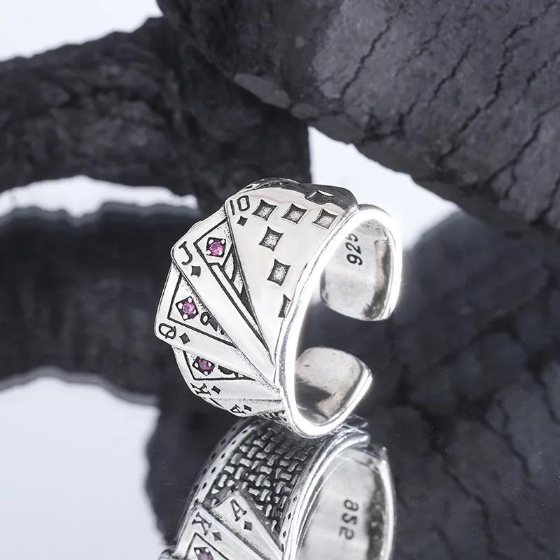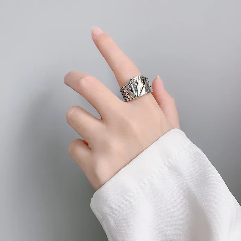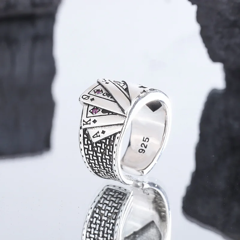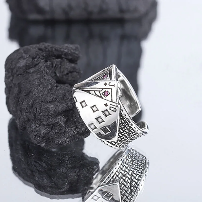 PANJBJ 925 Stamp Silver Color Poker Ring For Wowen Man Neutral Retro Pink Zircon Jewelry Birthday Gift Dropship