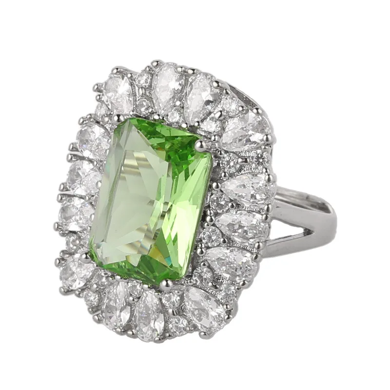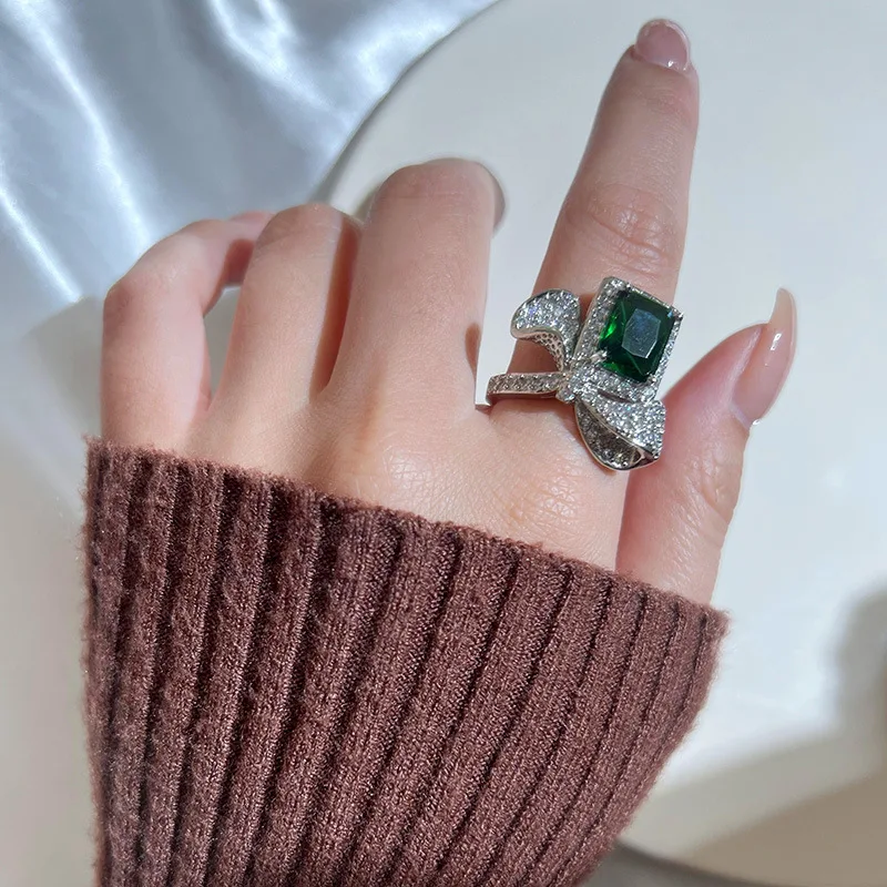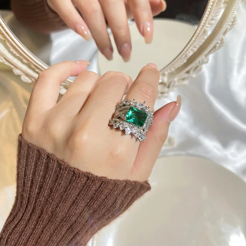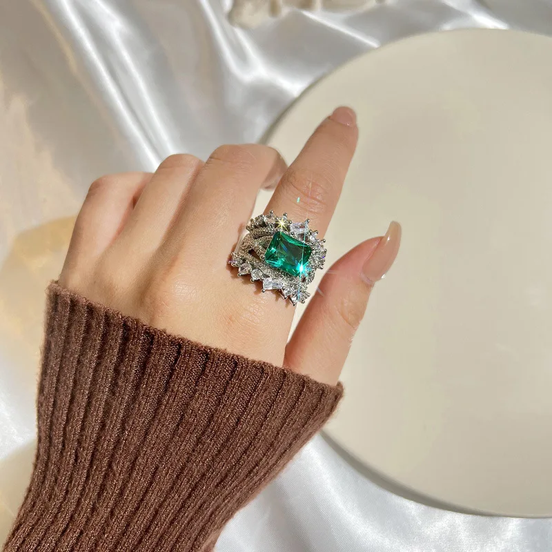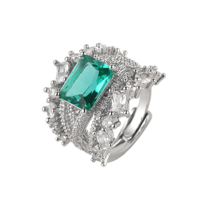 PANJBJ 925 Sterling Silve Zircon Wide Ring for Women Girl Overlapping Hollowing Out Grace Jewelry Banquet Gift Dropshipping