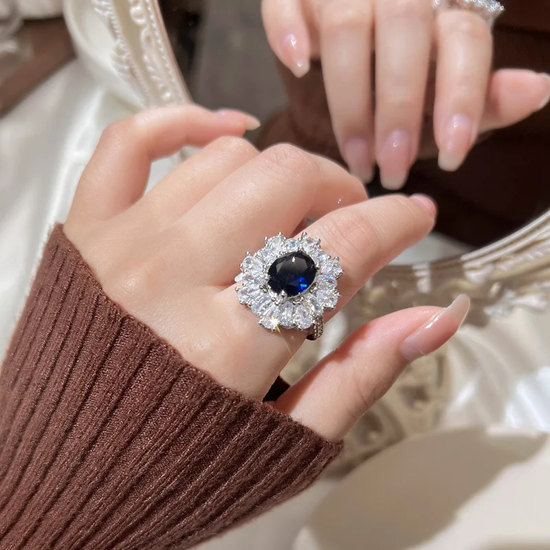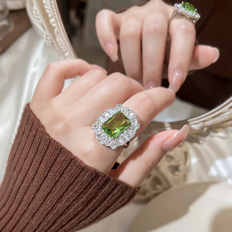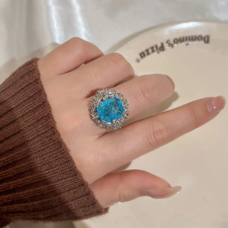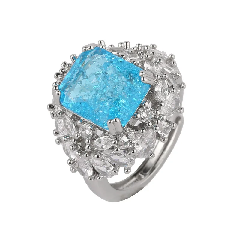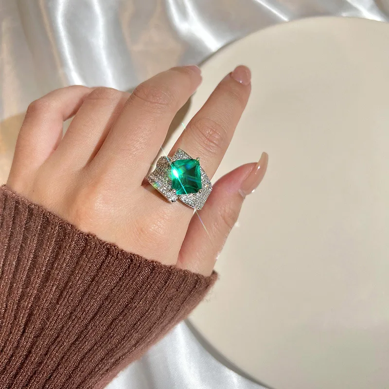 PANJBJ 925 Sterling Silve Zircon Wide Ring for Women Girl Overlapping Hollowing Out Grace Jewelry Banquet Gift Dropshipping