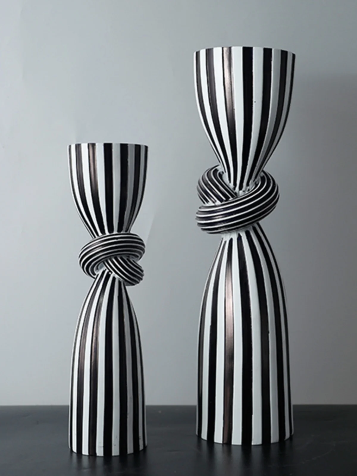 Resin Candlestick Ornaments Black White Striped Kink Candlestick Creative Living Room Dining Table Decor Room Decor Ornaments