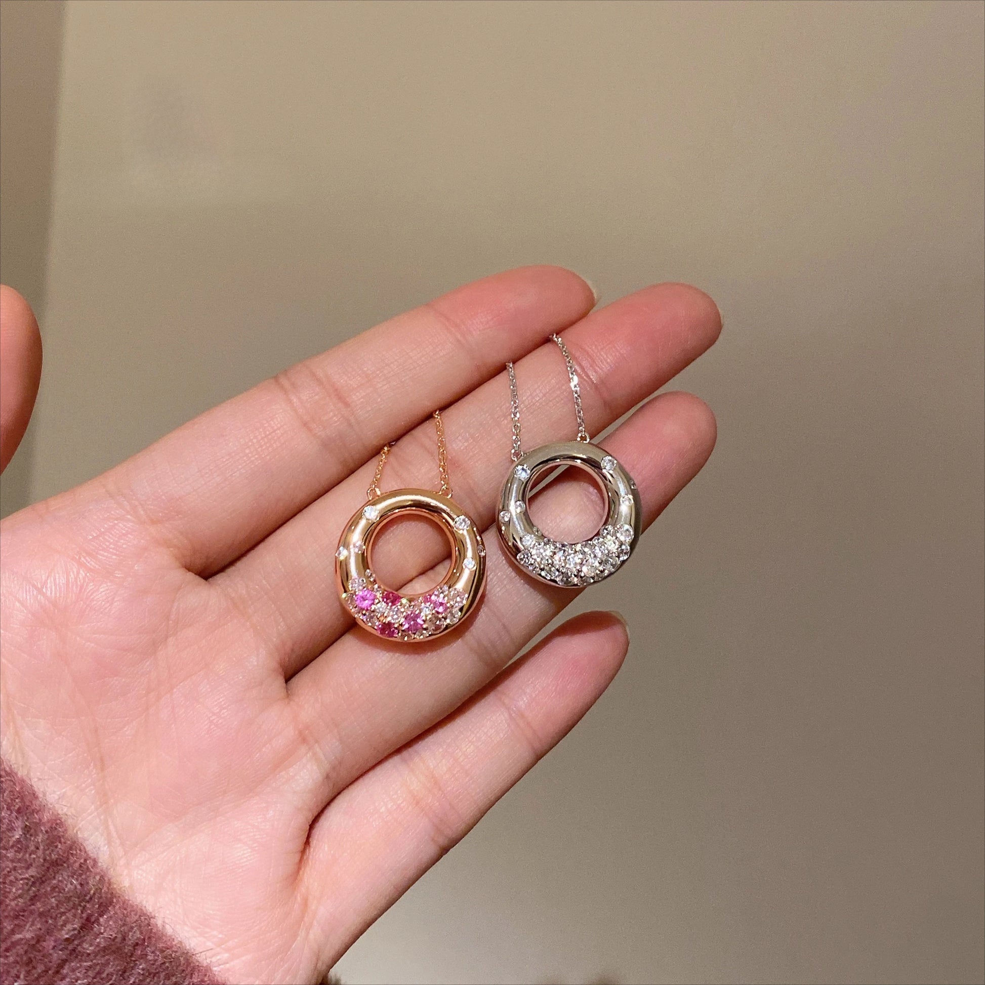 Sweet Donut Necklace Silver 925 Zircon Fashion Jewelry Chain Necklace