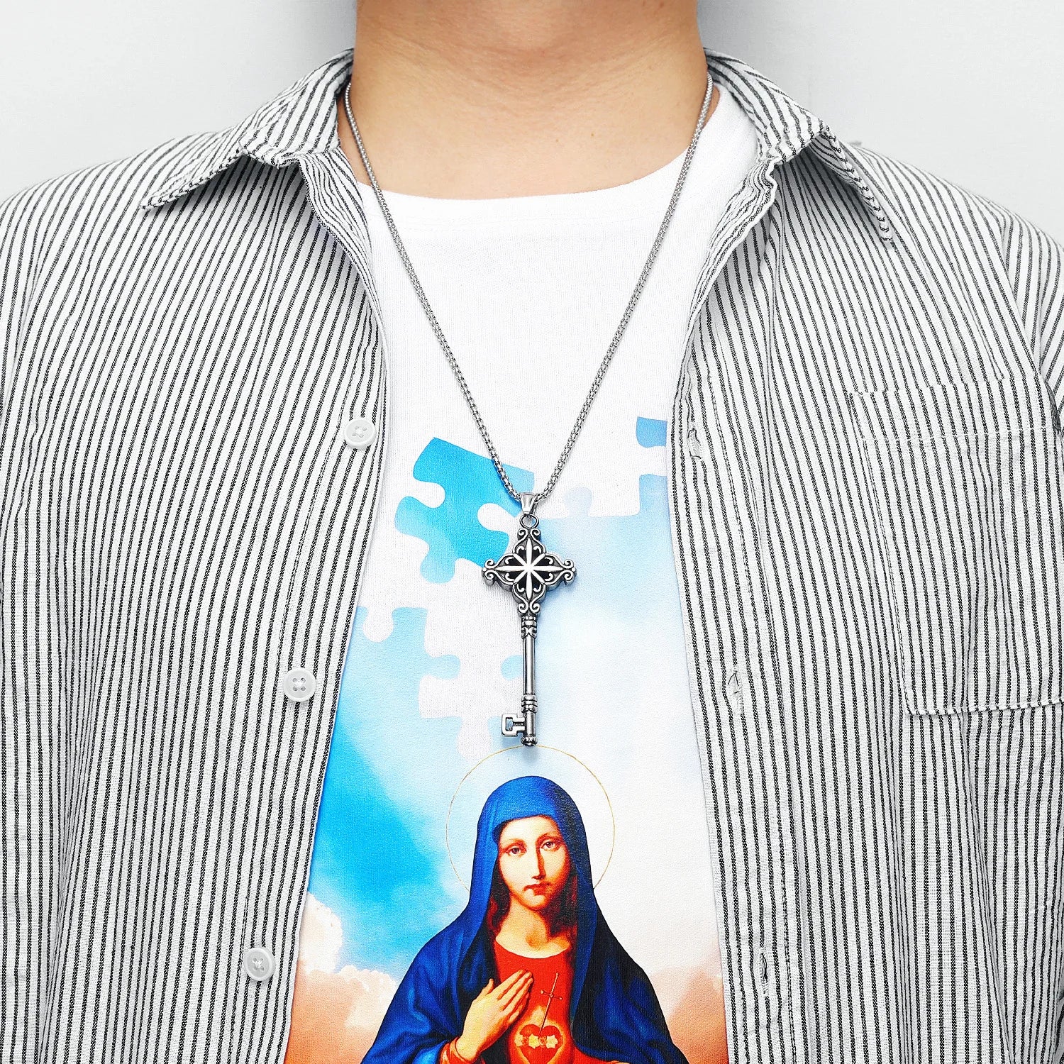 Vintage Men's Key Pendant & Necklace 316L Stainless Steel