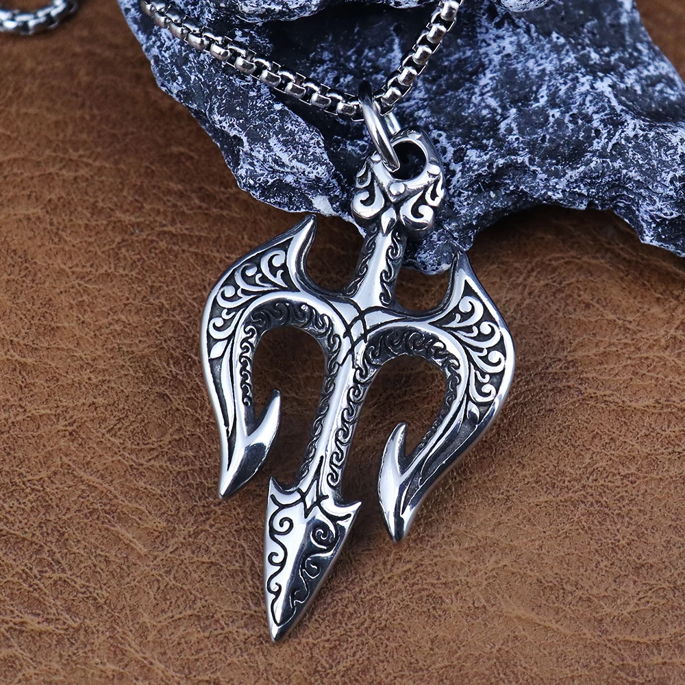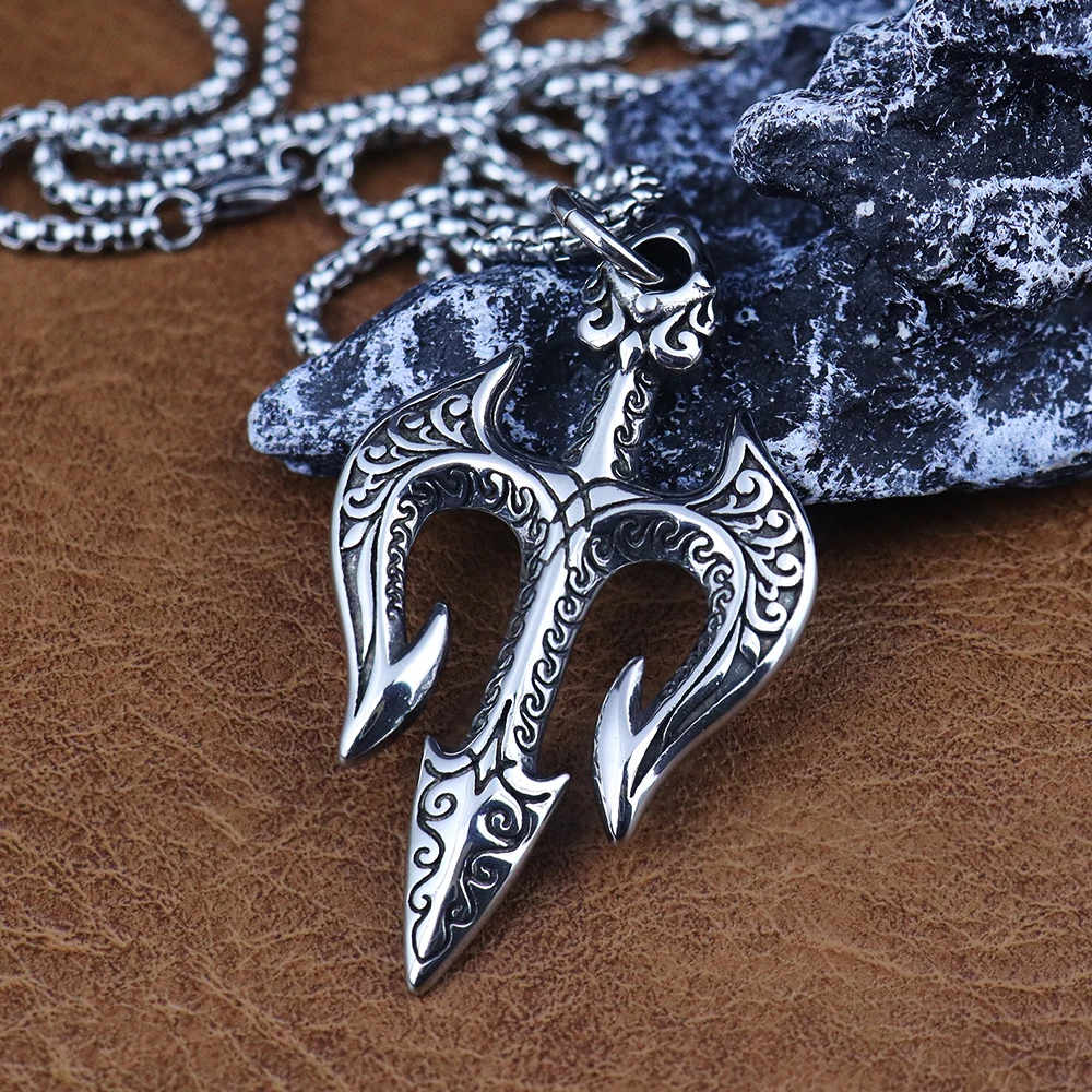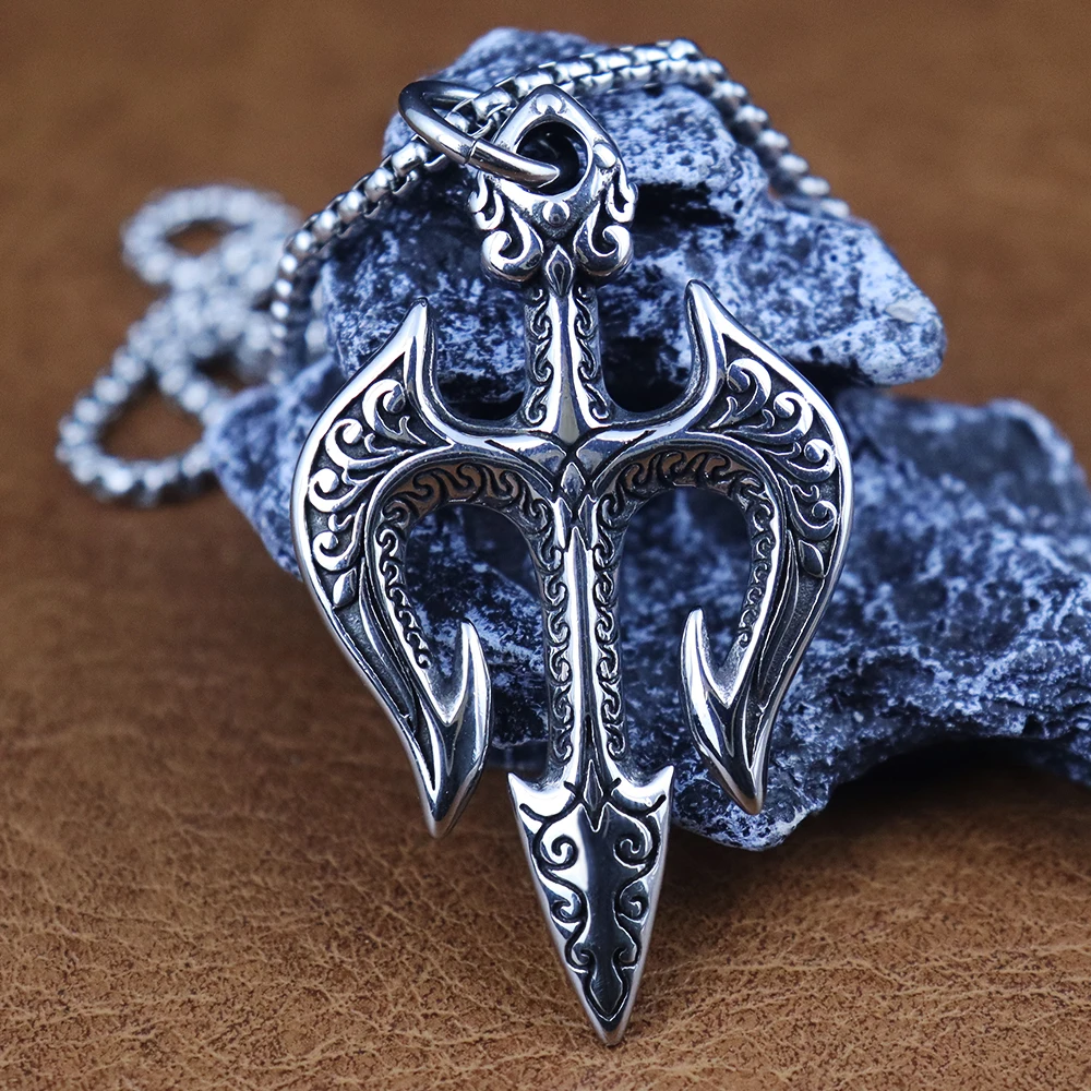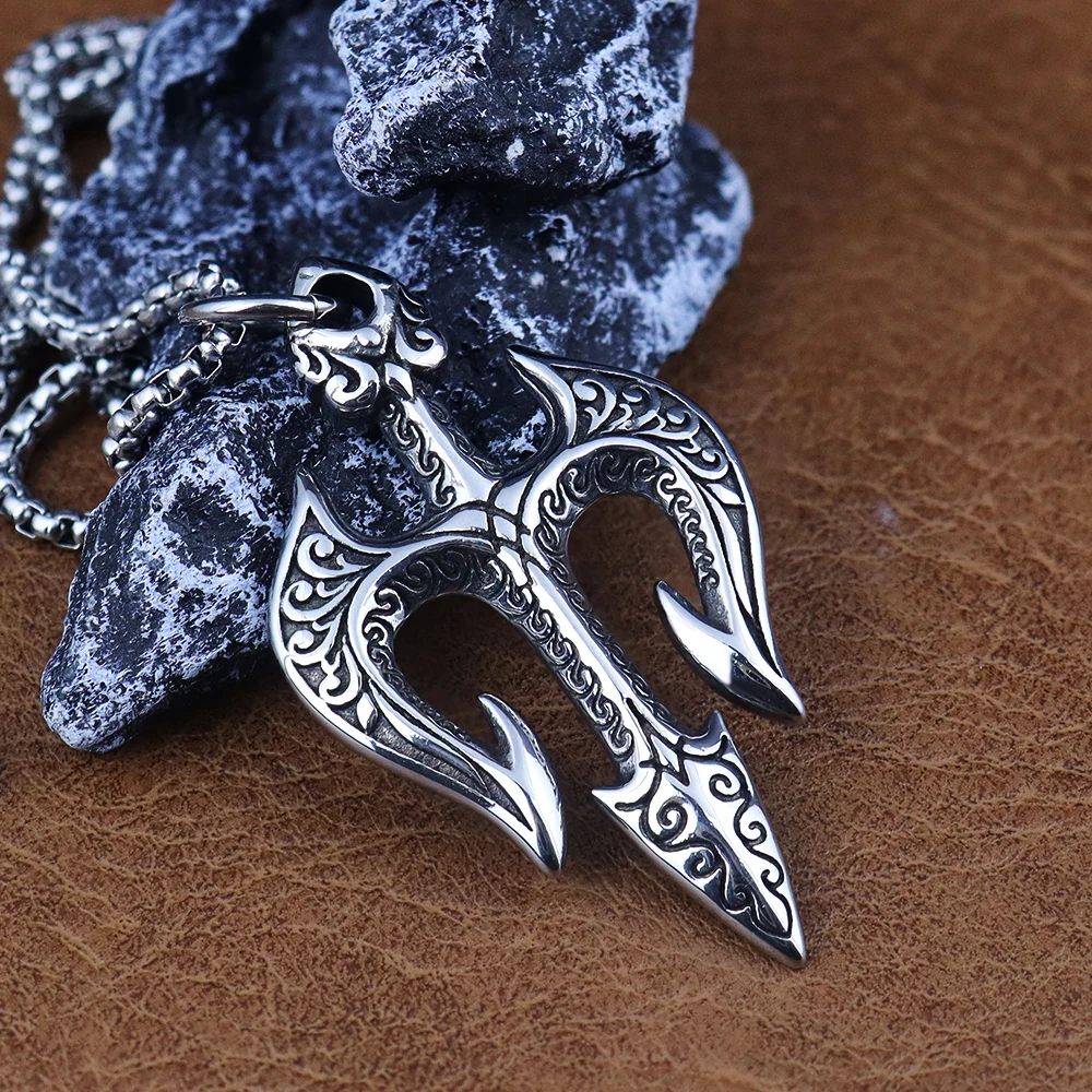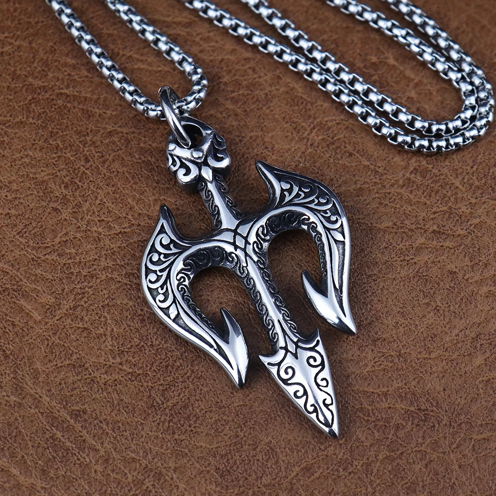 Name:Vintage Stainless Steel Shiva Pendant Fashion Poseidon Trident Necklace for Woman Medieval Male Jewelry Accessories Dropshipping