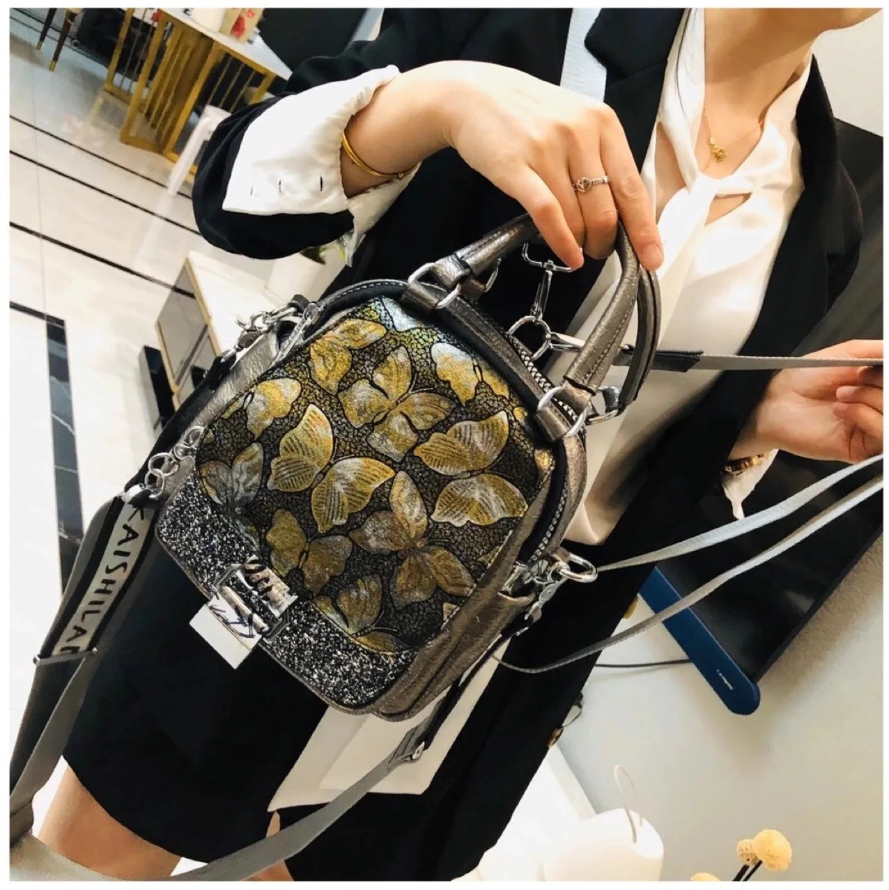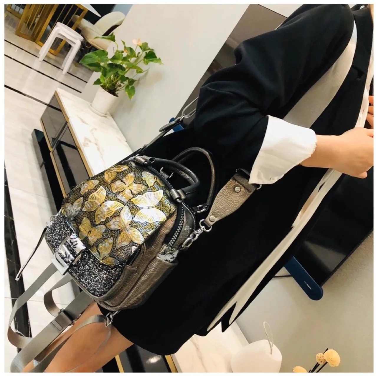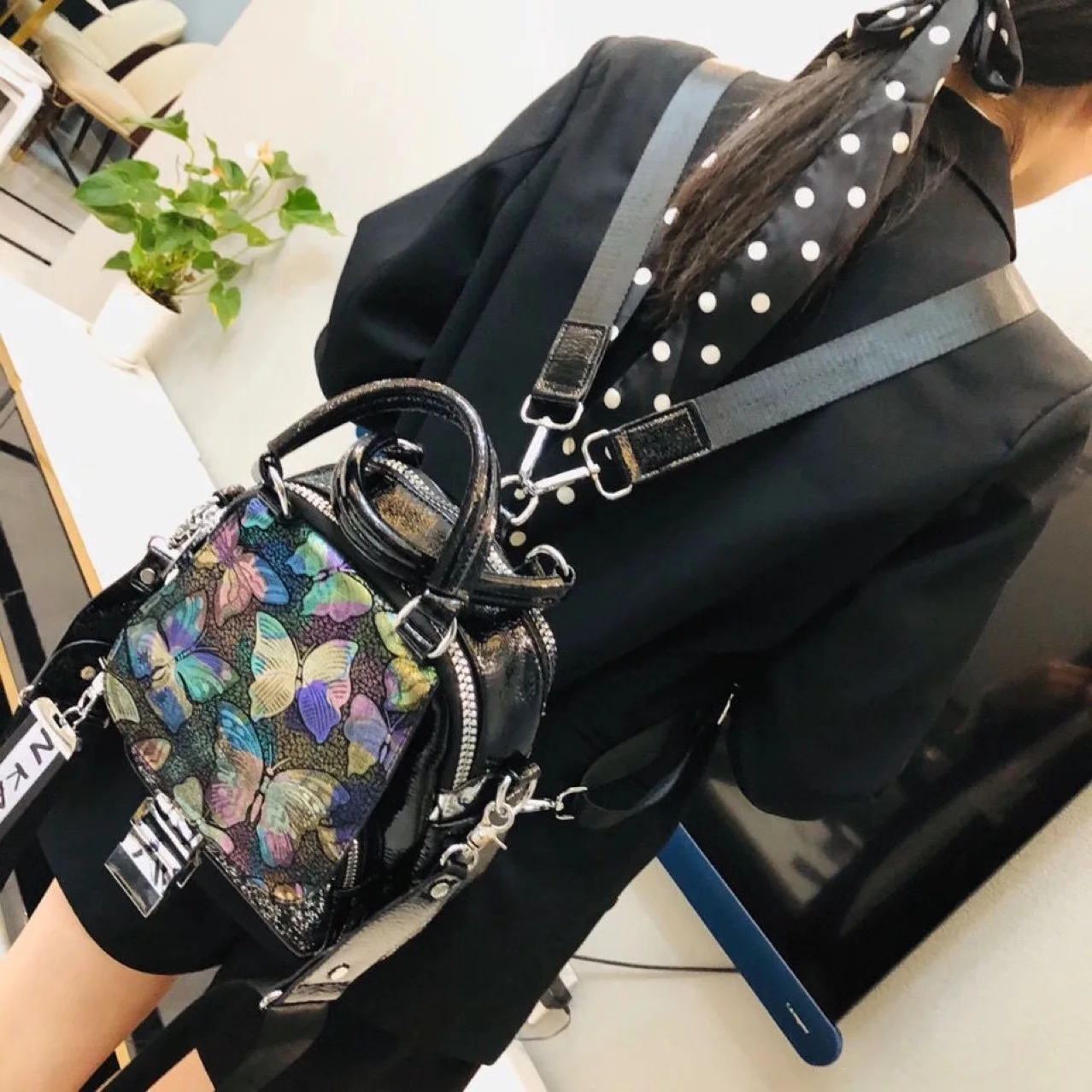 Women Vegan Leather Butterfly Small Size Backpack Female PU Leather Rhinestone Multi-pockets Travel Convertible Handbag Daypack