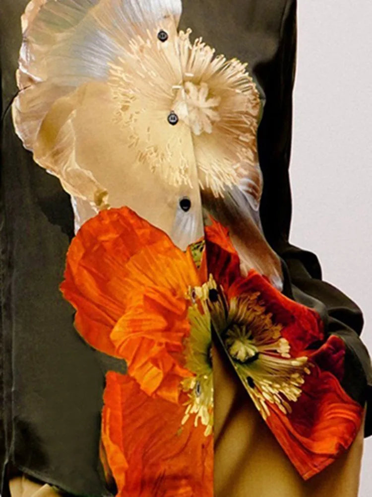 Elegant Long Sleeves Loose Floral Printed Urban Casual Office Blouse
