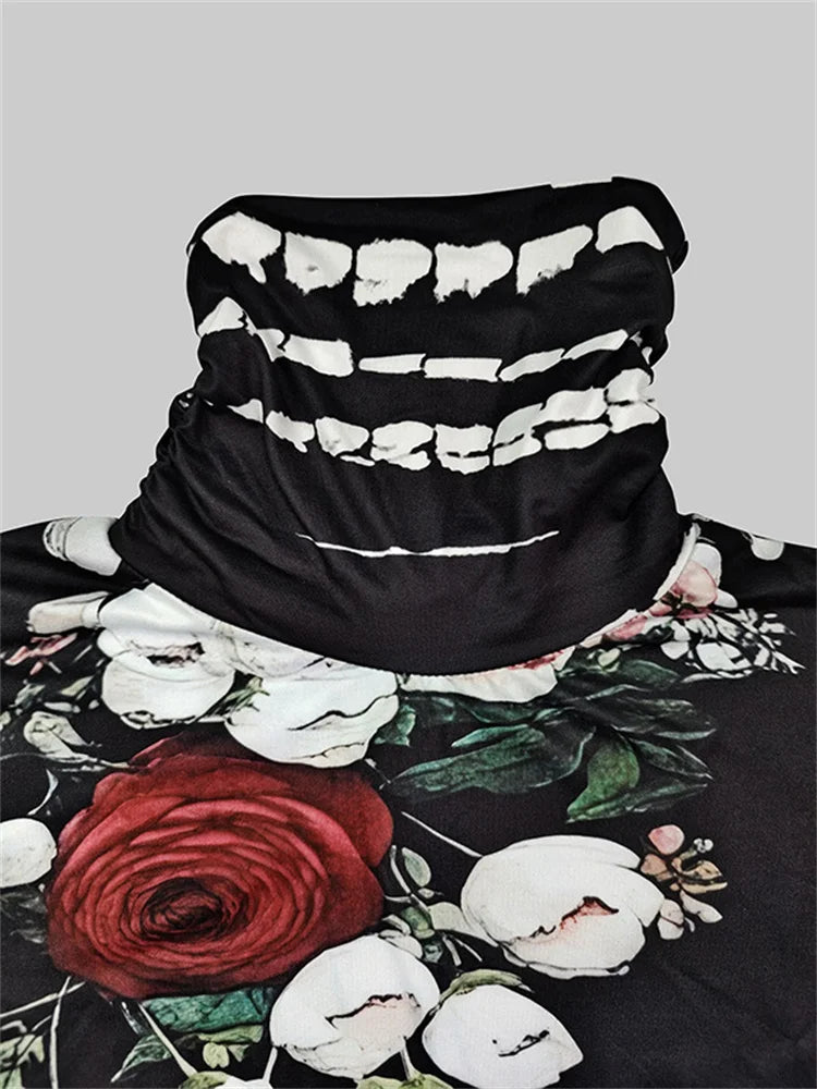 High Neck Floral Printed Pullover Tops Long Sleeves Skinny Casual